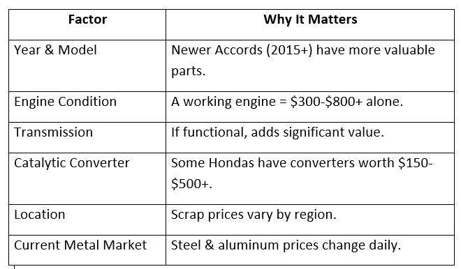 That old Accord in your driveway isn't just a car; it's potential. Potential for cash, for a new life as recycled steel, for keeping another Honda running. Each day you delay, its value diminishes. But today, you have the power to turn that fading metal into something real. What will you choose?